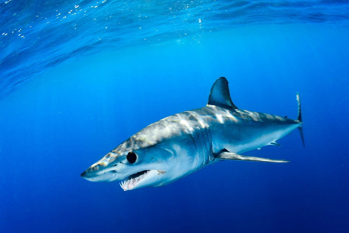 The basking shark, also known as the porbeagle shark, is the second-largest fish species in the world and often appears off the coast of Great Britain in the summer, searching for plankton to feed on in warm ocean currents. Despite its impressive size, it is harmless to humans and filters water through its gills, collecting tiny organisms to support its enormous body mass in the marine environment. An encounter with such a shark while boating is a rare and memorable experience for sailors and nature lovers on the high seas.